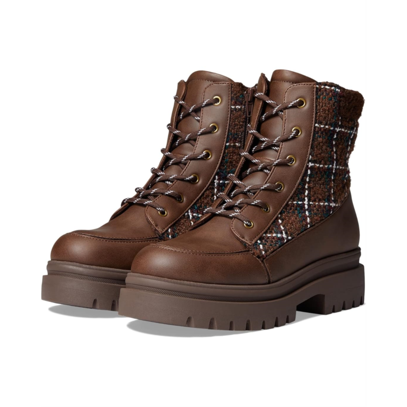 Lug sole construction and plush foam comfort insole.
