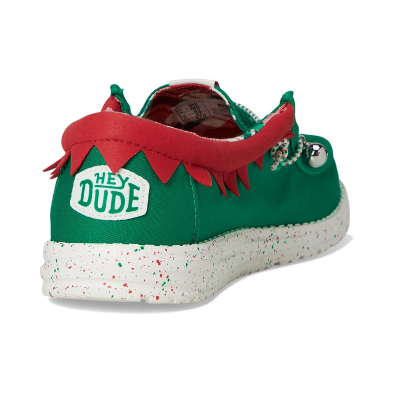Easy, breezy, textile makes this slip-on Hey Dude Wally Holiday Elf Greenu002FRed sneakers ready to roam. Designed With you in mind. this Wally shoe boasts the comfort of walking on clouds. Featuring an insole that reduces odors, a lightweight outsole, and a breathable cotton fabric upper. The Flex & Fold technology supports healthy feet with its unique shape giving complete freedom of movement.