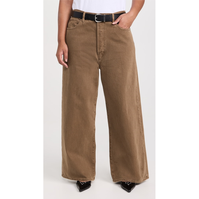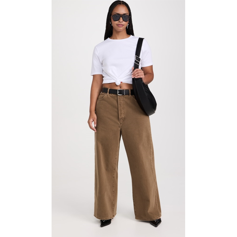 These jeans are meant to sit low-slung on the hips, and are finished with a loose, ''90s-inspired wide leg. Non-stretch denim will soften and give with wear.