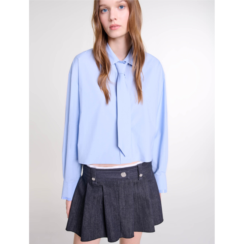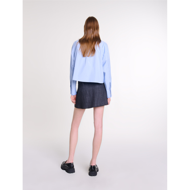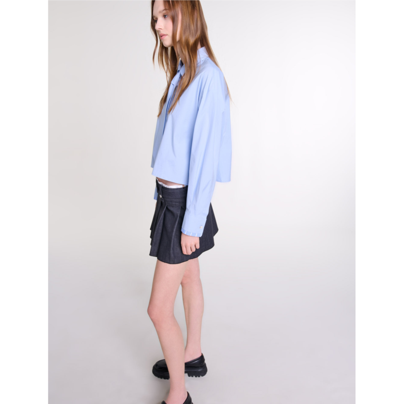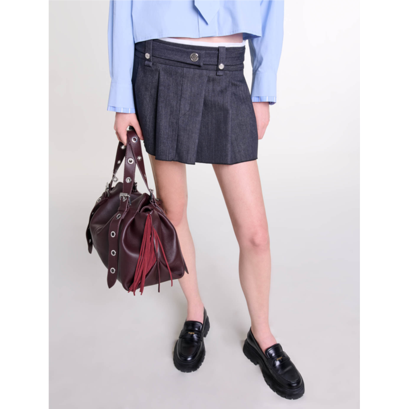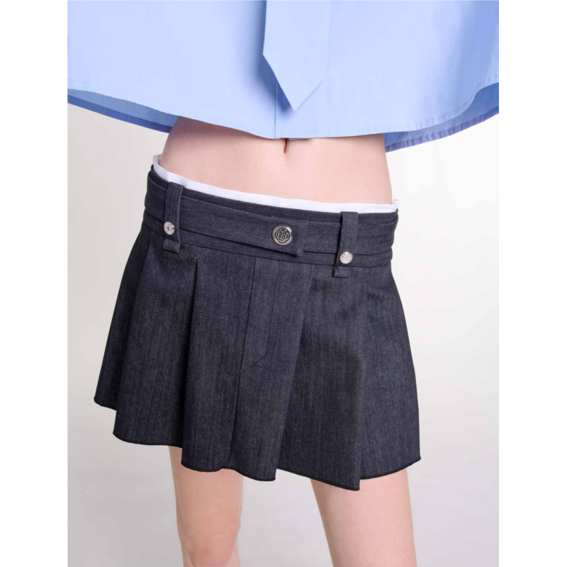 This pleated mini skirt is a trendsetting, modern piece. The white cotton lining on the waistband adds an extra touch of style. It fastens with a button and hook-and-eye fastening. Perfect for daytime or office wear, it goes with everything. Mix and match it with a jumper, bag and ballet flats embellished with studs.