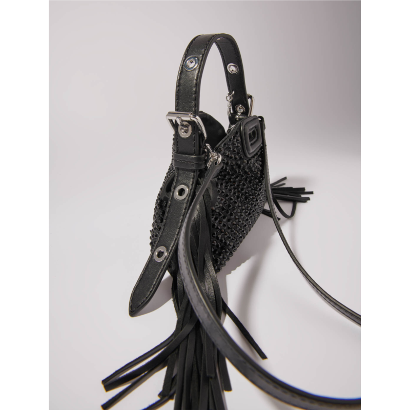 Maje is making a fashion statement with the latest addition to its collection: the Miss M nano, trimmed this season with all-over black rhinestones.