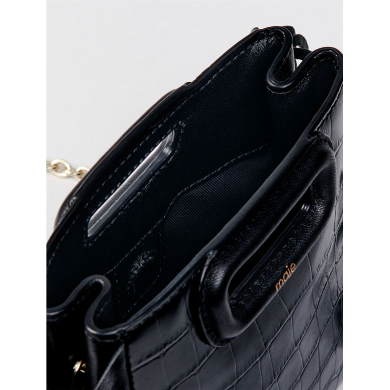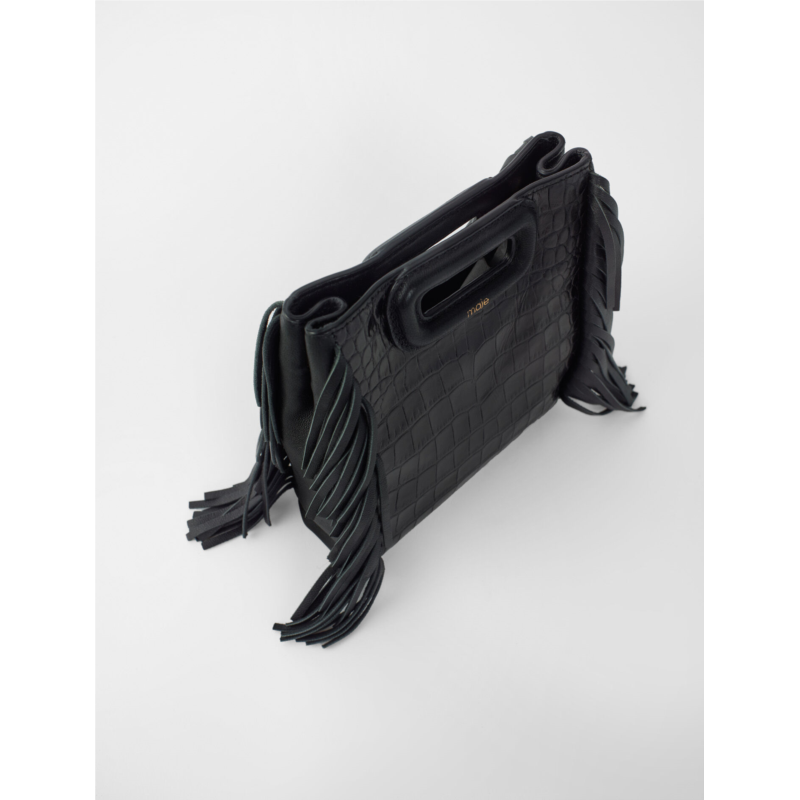 Maje''s iconic M bag comes in mock croc embossed leather in this season''s must-have colours. Embellished with fringes on the sides and a covered handle, it features an embossed gold logo and a signature engraved on the lobster clasps. It has a practical magnetic fastening and an adjustable, removable shoulder strap that can be worn in a variety of ways: by hand, on the shoulder or crossbody.