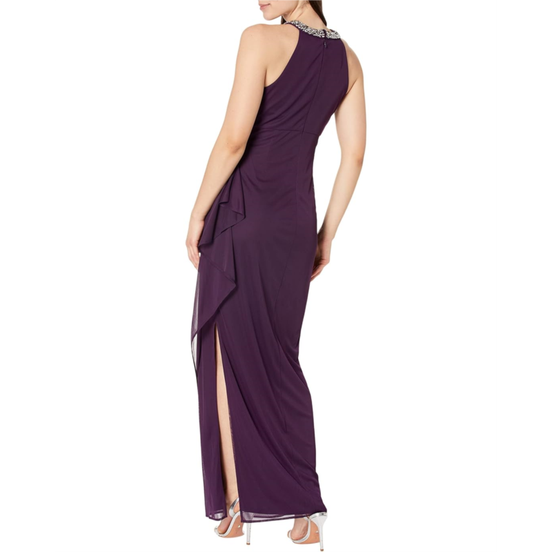[US] Alex Evenings Beaded Halter Long Gown with Side Ruching