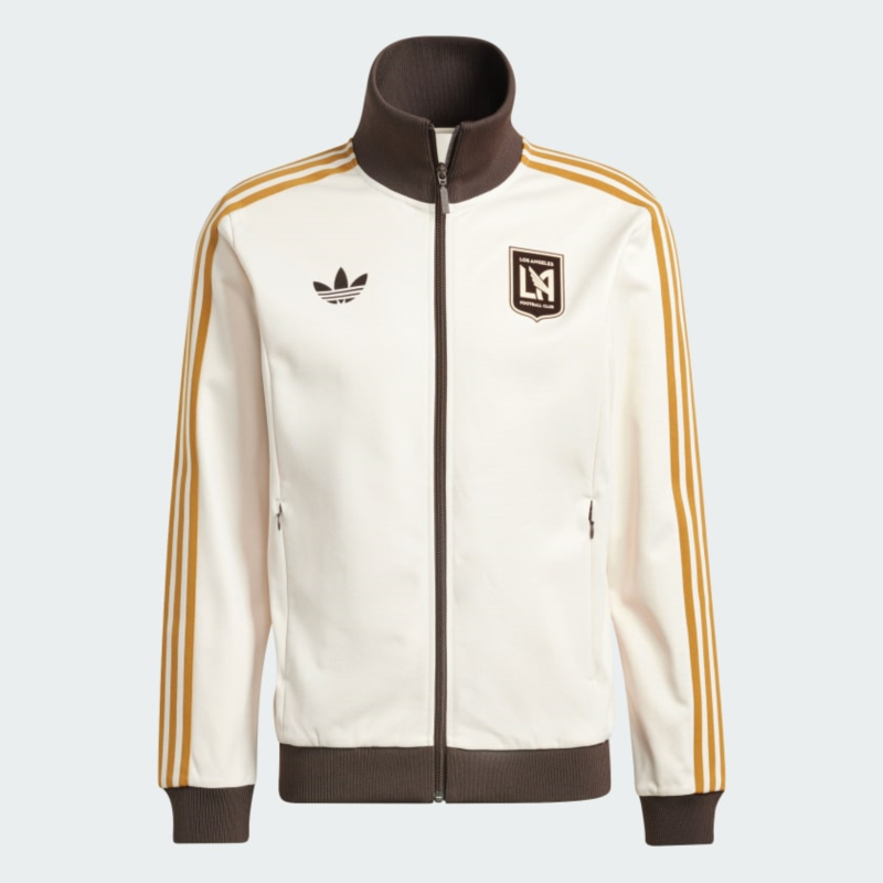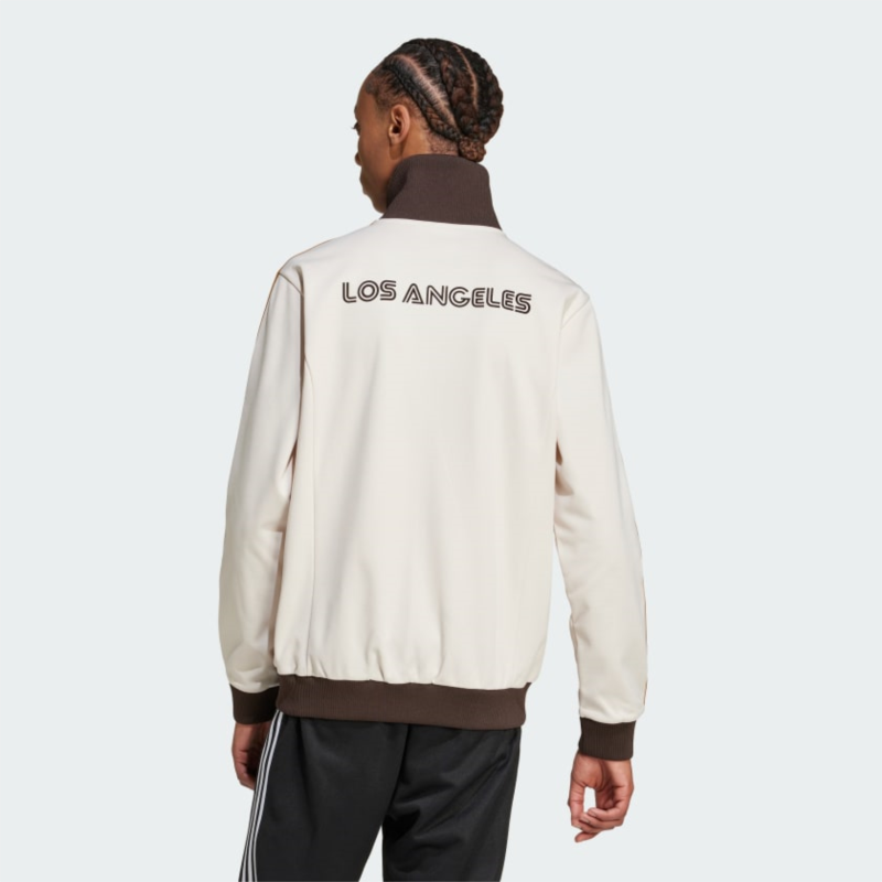 An adidas icon dressed in vintage-inspired third kit colors. This Los Angeles FC track top channels ''70s soccer heritage for a look that will have you standing out from the match day crowds. Embroidered into its soft pique fabric, a Trefoil and LAFC badge star on the front. On the back, a team name shows you''re right behind your squad.