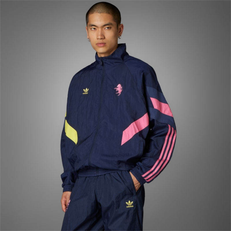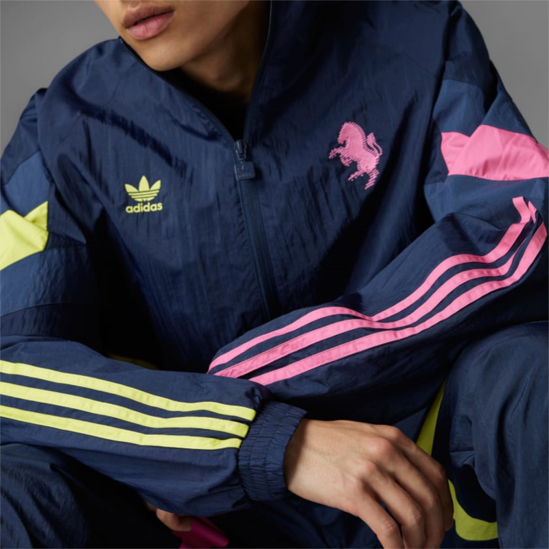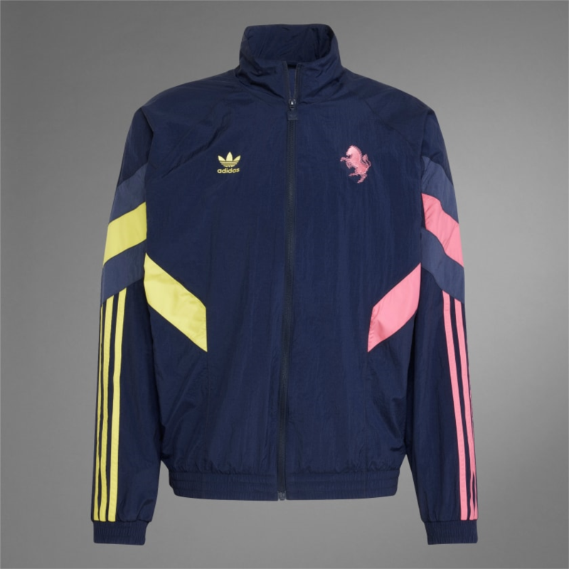 Express the passion of the Bianconeri in this Juventus track top. Rooted in soccer history but delivering modern-day comfort, it flashes classic adidas details and a vintage team badge in pink and yellow colors borrowed from the club''s away kit. Wear it to the stadium or when you''re catching up with mates. Either way, the mesh-lined woven fabric and ribbed cuffs will keep you comfortable.