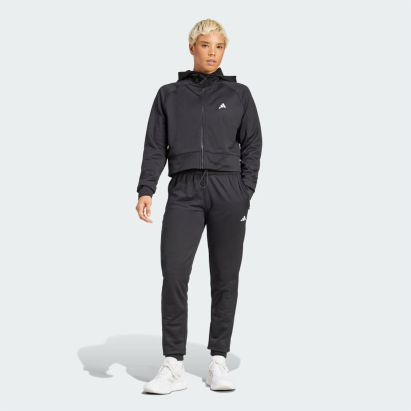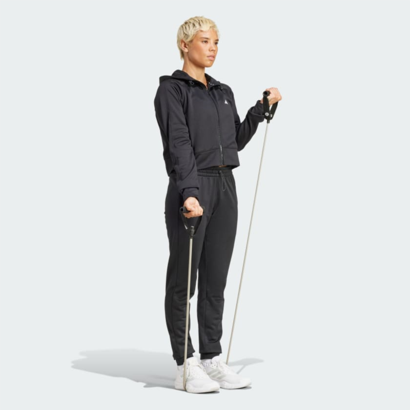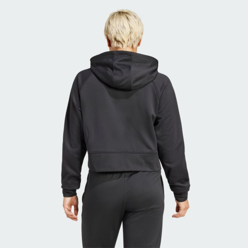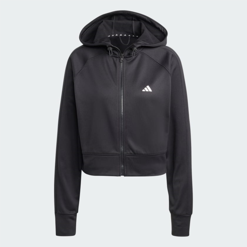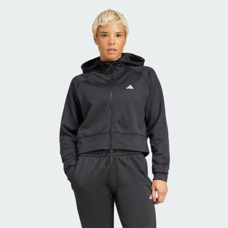 What you wear before and after your workout matters. You need to stay warm and comfortable while you layer up and get going. This adidas jacket goes the distance in cozy polyester fleece that''s soft from the inside out. The full zip and adjustable hood add practical detail, while a crop cut keeps the style feeling fresh. AEROREADY takes care of sweat, and a key pocket on one side stows small belongings by your side.