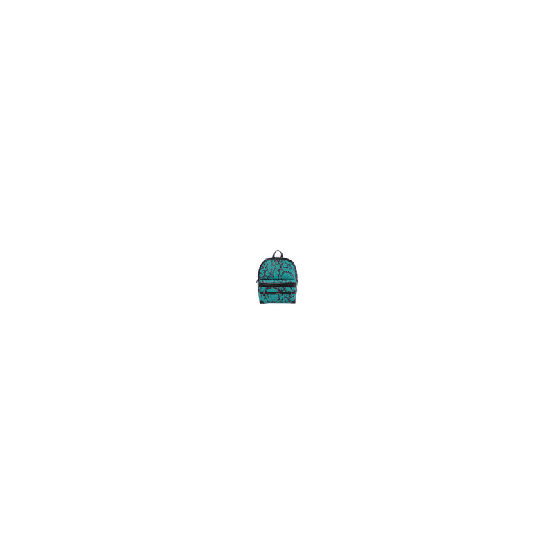 Versace Men''s Backpack. SKU: 1A04996-Black+Grey+Teal-Ruthenium. Barcode: 8054712503887. Color: Black/Grey/Teal/Ruthenium. Versace Greca Print Leather Backpack. Greca-print leather backpack from Versace featuring mesh detailing, signature Greca-pattern print, logo stamp to the front, single top handle, two adjustable shoulder straps, top zip fastening and front zip-fastening compartment.