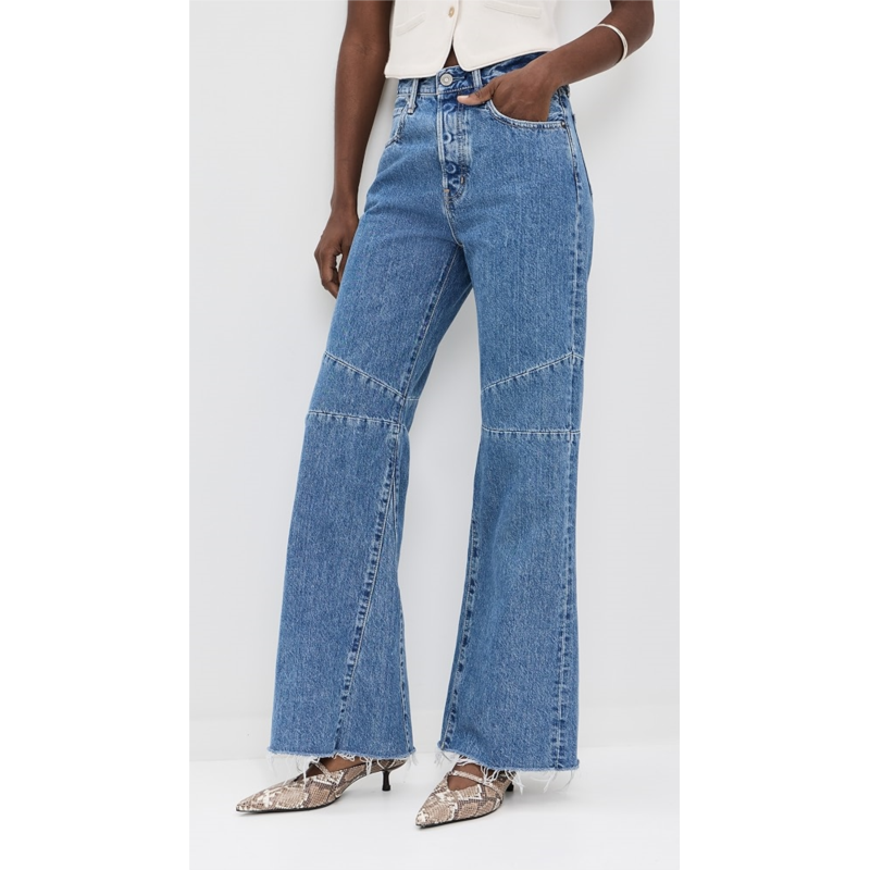 Designed with a high-rise, flare-leg silhouette. Non-stretch denim has a mid-weight feel.