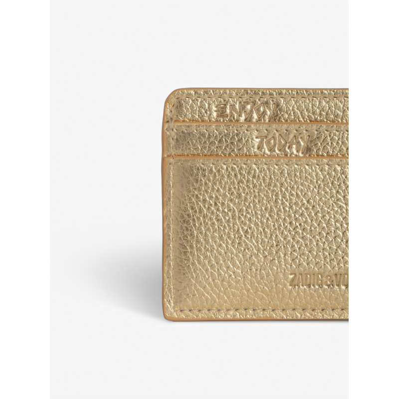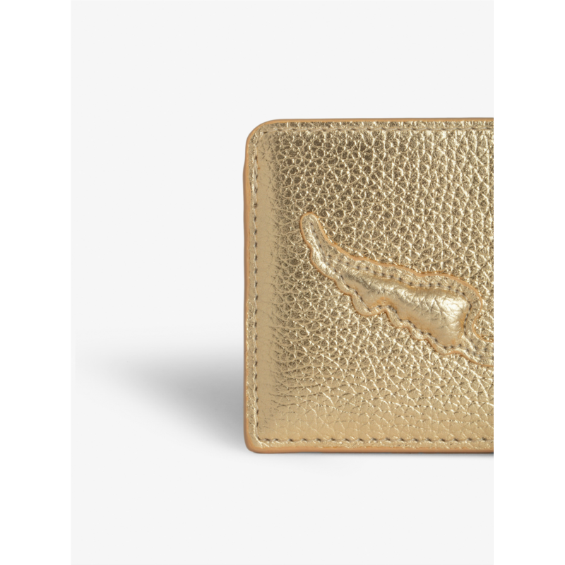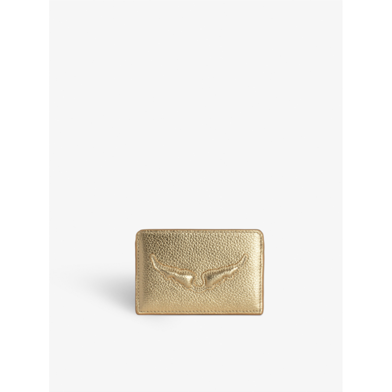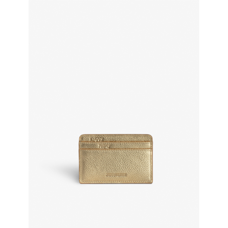 - Womens ZV Pass card holder in Gold metallic grained leather