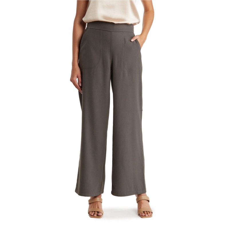 Flowy wide leg trousers topped with an elastic waistband are a comfortable workwear essential that will elevate your professional style.