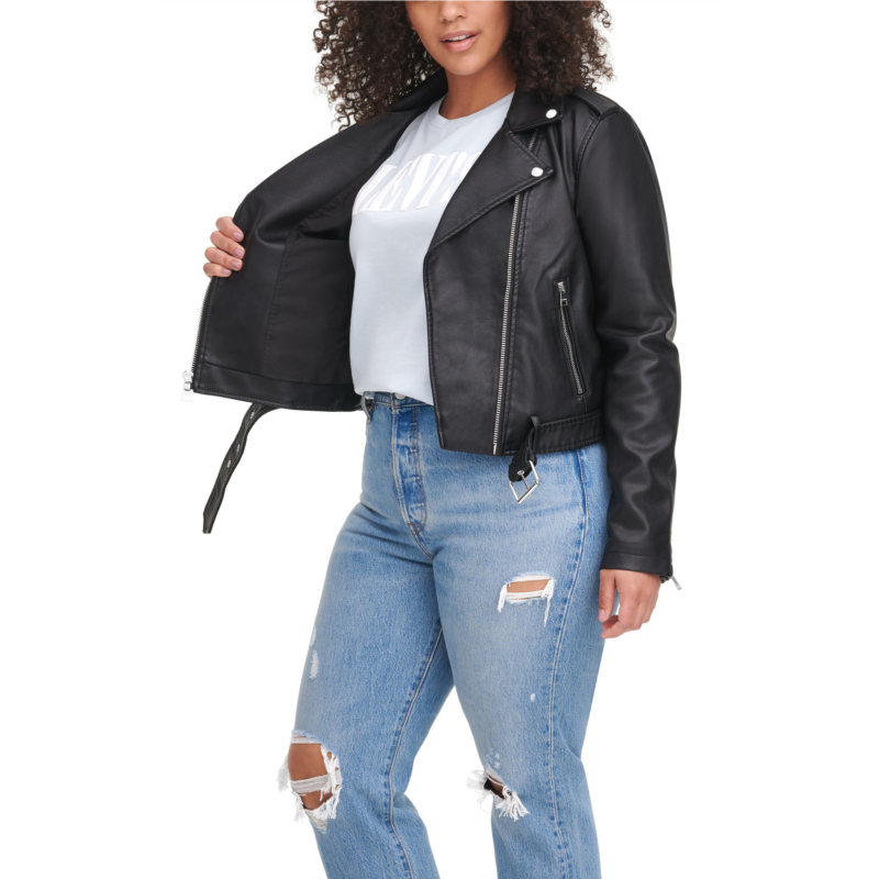 [US] Levi s Water Repellent Faux Leather Fashion Belted Moto Jacket