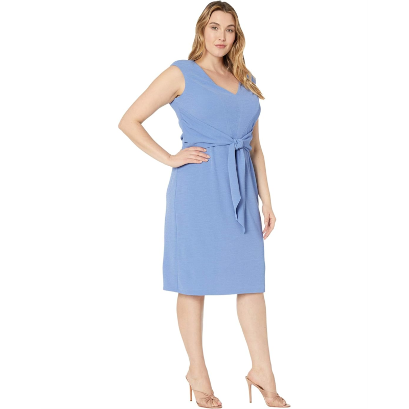 [US] Adrianna Papell Plus Size Rio Knit Draped Tie Sheath Dress