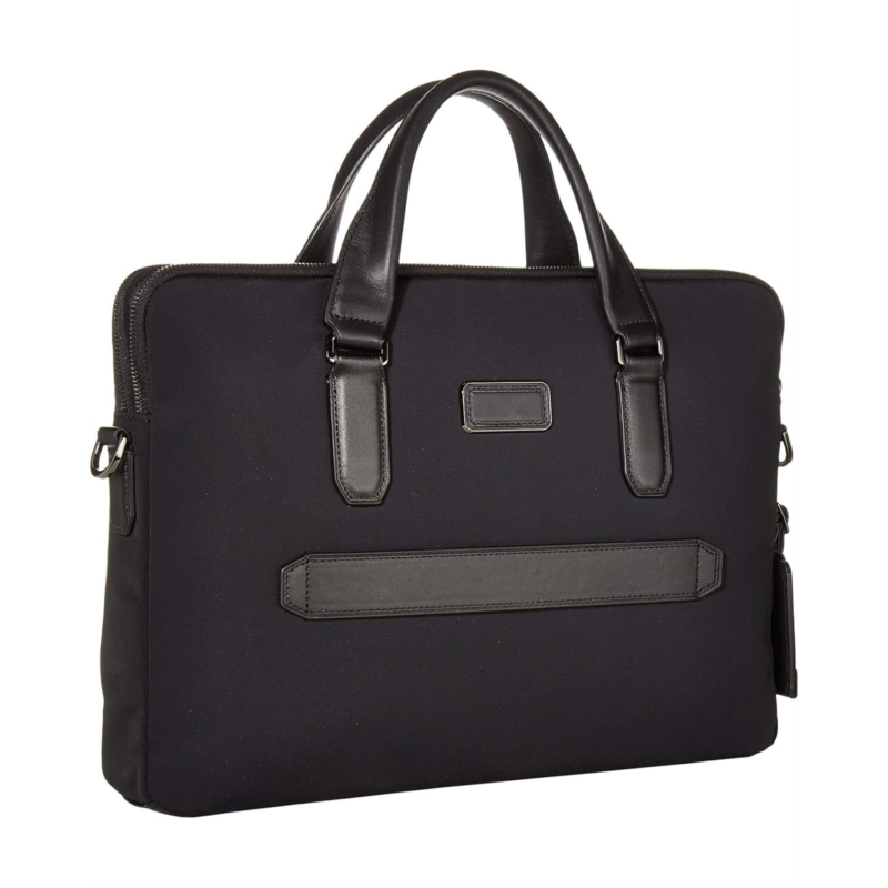 The sleek look of the Tumi Sycamore Slim Brief maintains a minimalist profile while still managing to carry all the essentials of your day-to-day workload without adding any unnecessary bulk. The commuter bag is crafted from a nylon exterior and features luxe leather trims throughout and has a removable adjustable crossbody strap.
