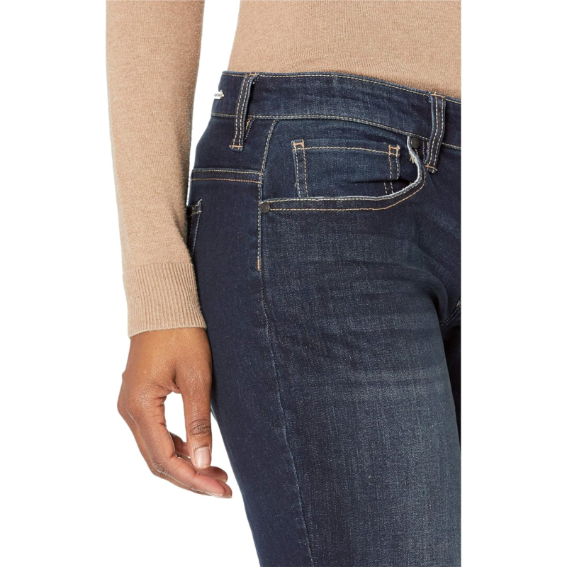 Boyfriend-cut denim have a mid rise, relaxed fit, and straight leg.