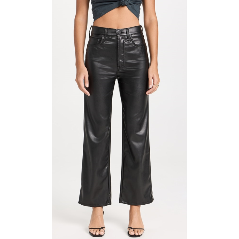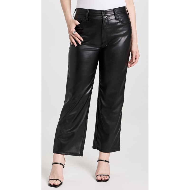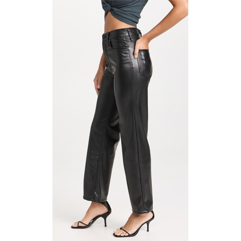 Stretch faux leather has a supple hand. Jeans have a relaxed, straight-leg fit.