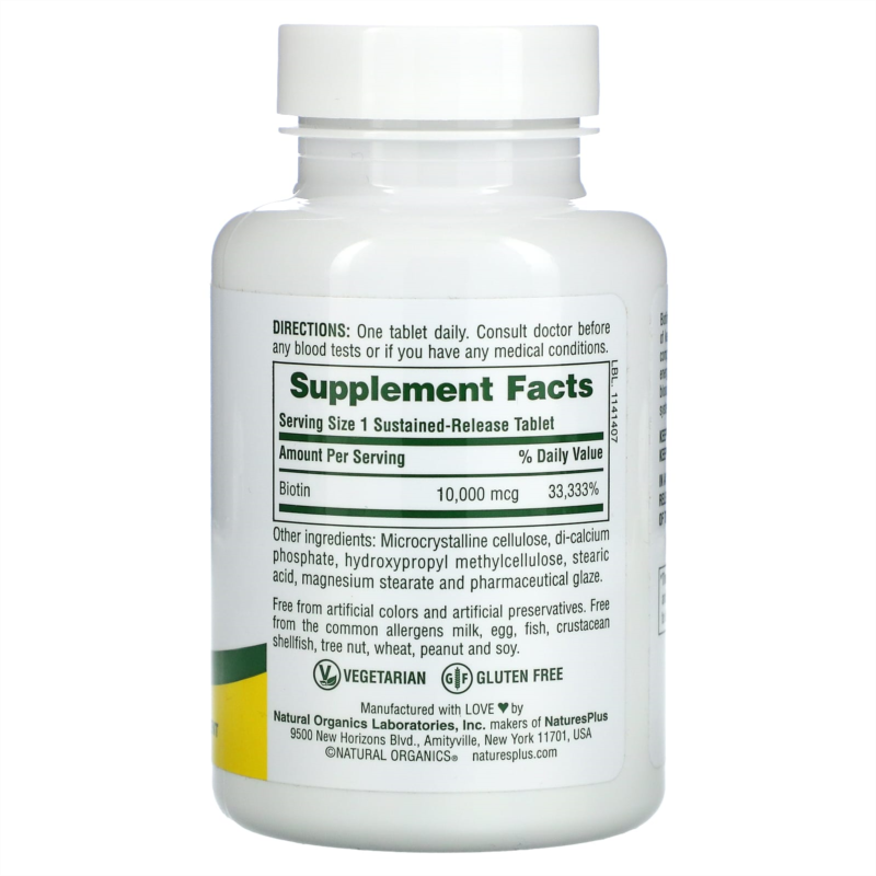 [US] NaturesPlus Biotin Sustained Release 10000 mcg 90 Tablets