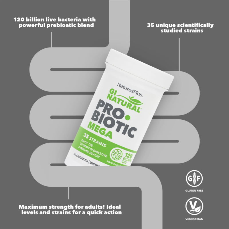 NaturesPlus GI Natural Probiotic Mega 120 Billion CFU 30 Capsules
