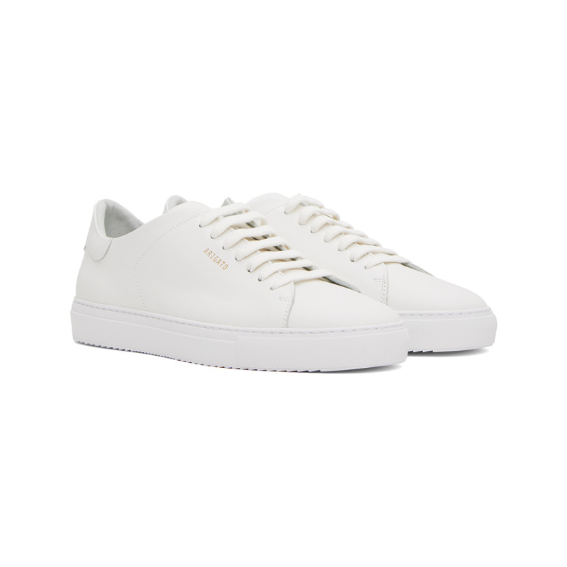 Handcrafted low-top buffed leather and suede sneakers in white.