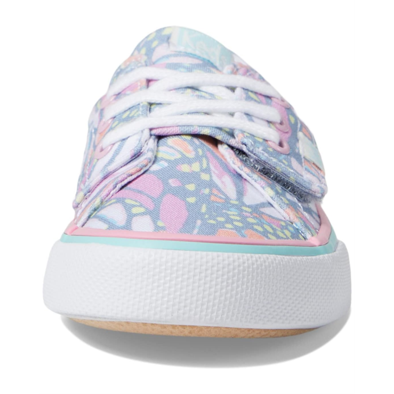 The Keds Jumpkick sneaker shows off an animal print design in a canvas upper so you can pounce onto the playground!