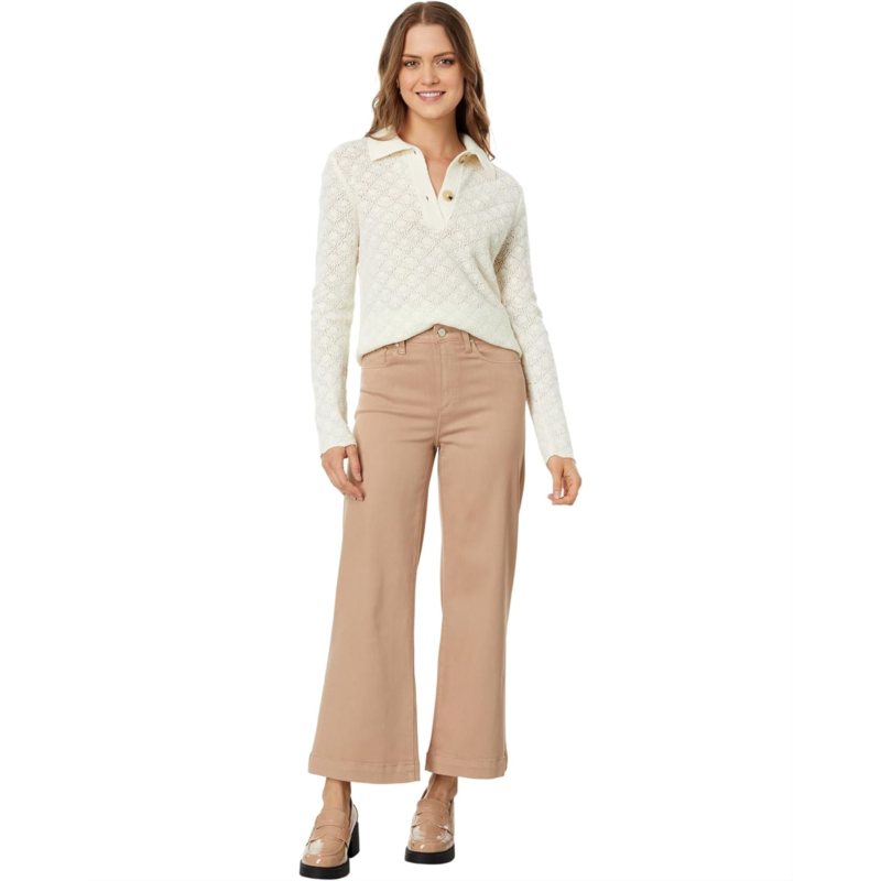 Shine like a star wearing the Paige Anessa in French Latte Luxe Coating jeans, which offer supreme stretchiness throughout the day. This pair is crafted with zip-fly button closure, wide leg design, and five-pocket construction.