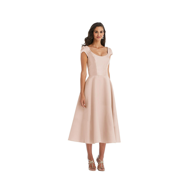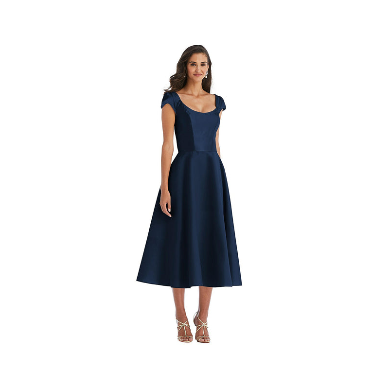 Alfred Sung puff cap sleeve full skirt satin midi dress