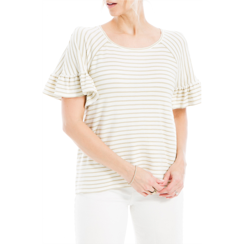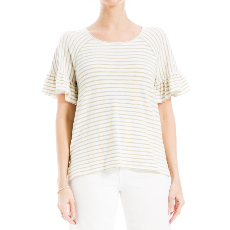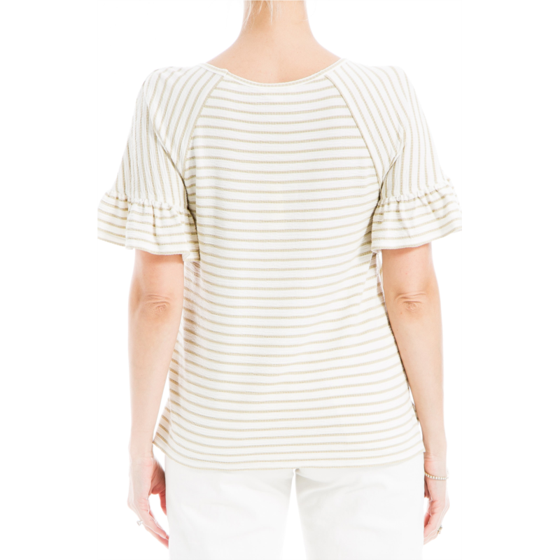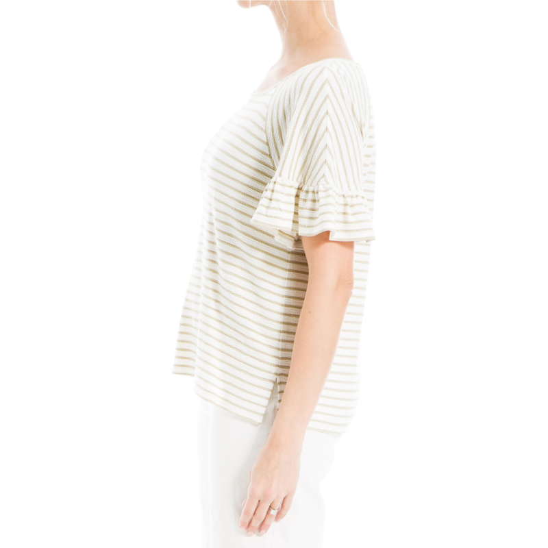 [US] MAX STUDIO Stripe Flutter Sleeve Top