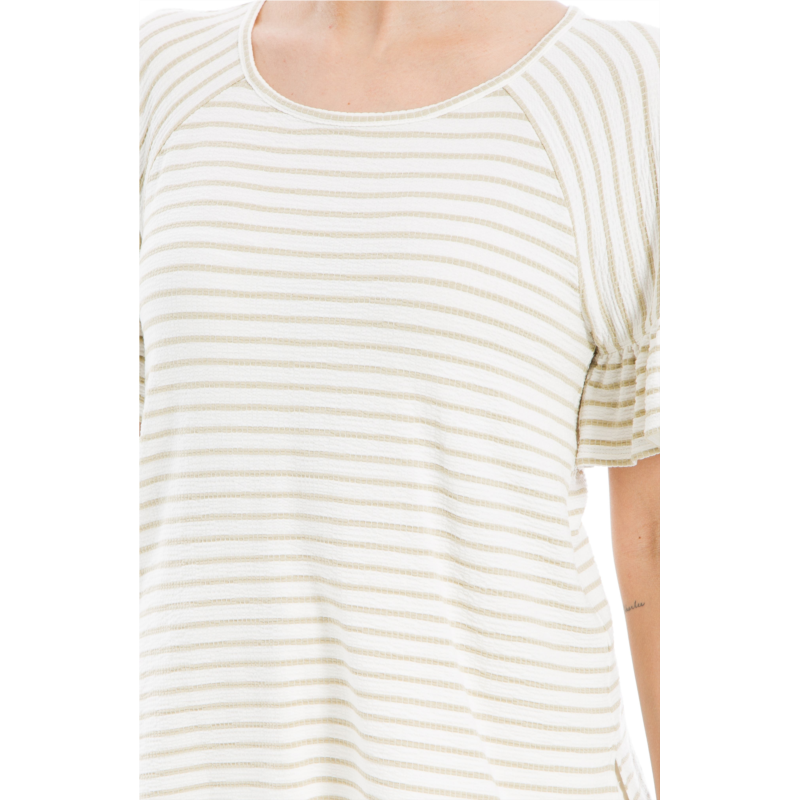 Fluttery sleeves bring chic style to this casual stretchy striped top.