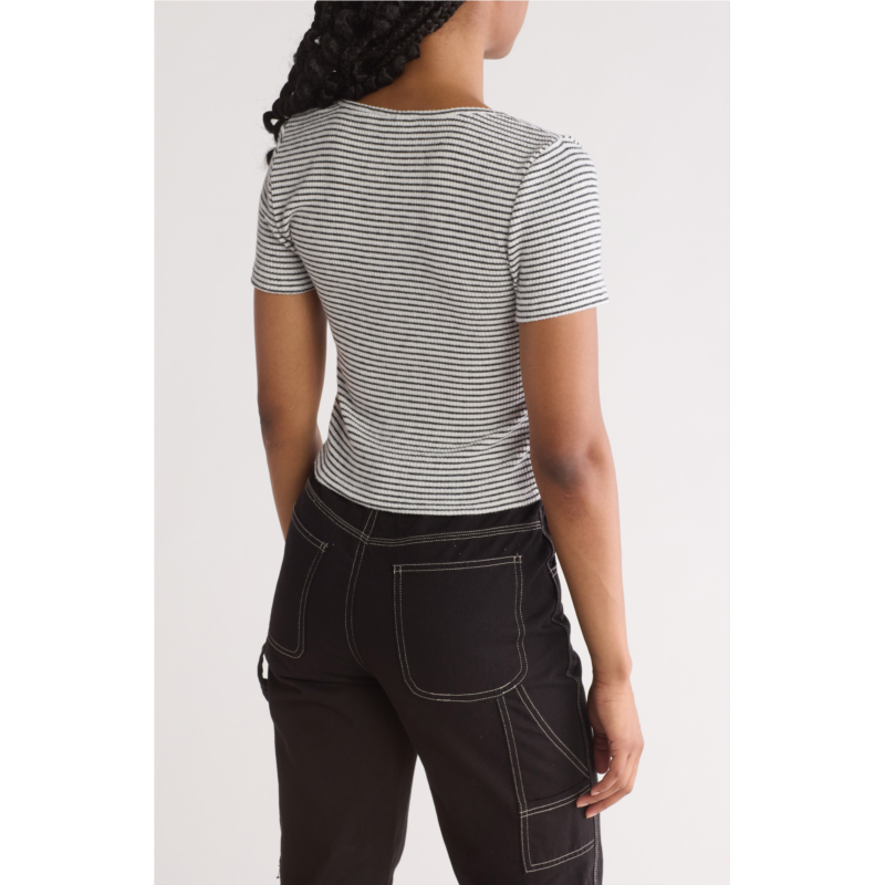 [US] Noisy may Stripe Notch Neck Rib Knit Crop Top