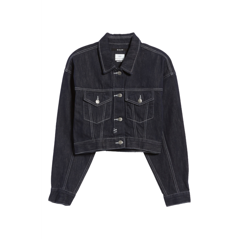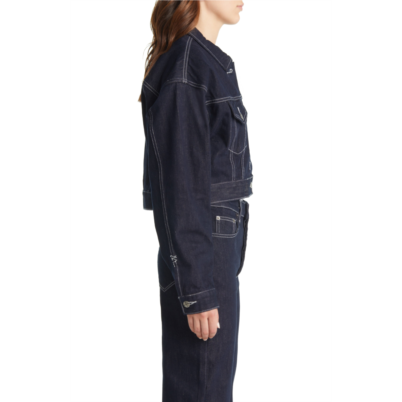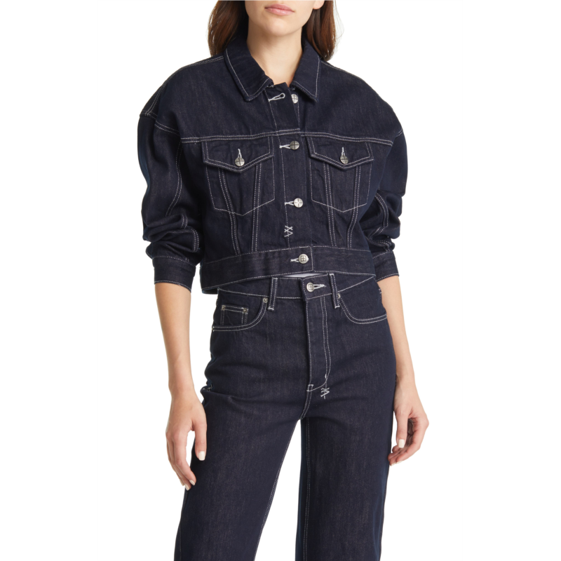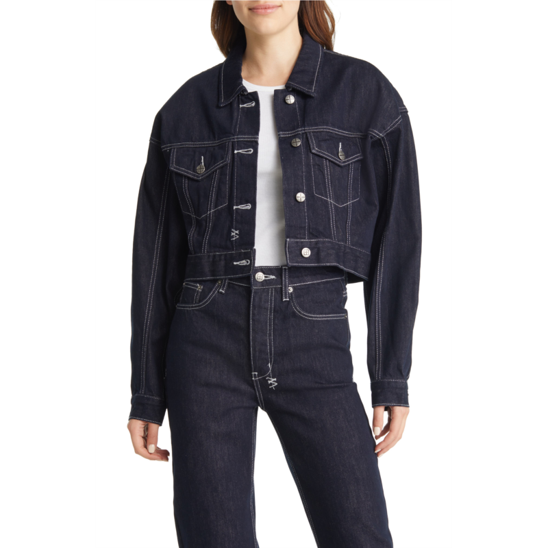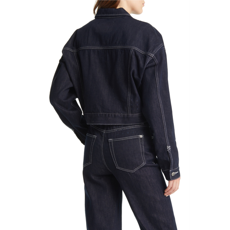 Bright white topstitching and a dark rinse elevate a classic trucker cut from sturdy, nonstretch denim.