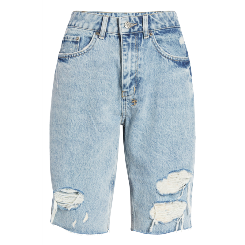 Ripped details add a cool worn-in feel to these mid-rise cutoff denim shorts featuring a heavy, nonstretch stonewash denim.