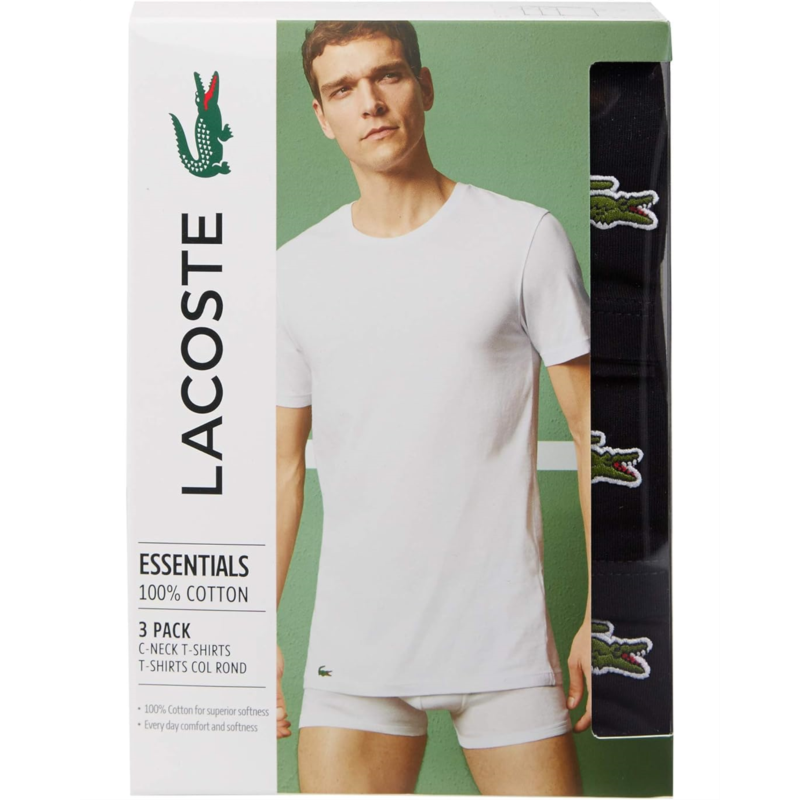 [US] Mens Lacoste 3-Pack Crew Neck Regular Fit Essential T-Shirt