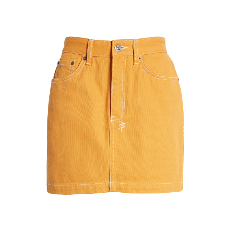 Bring sunshine to any day in a slim-fitting denim skirt featuring a high waist and contrast topstitching.