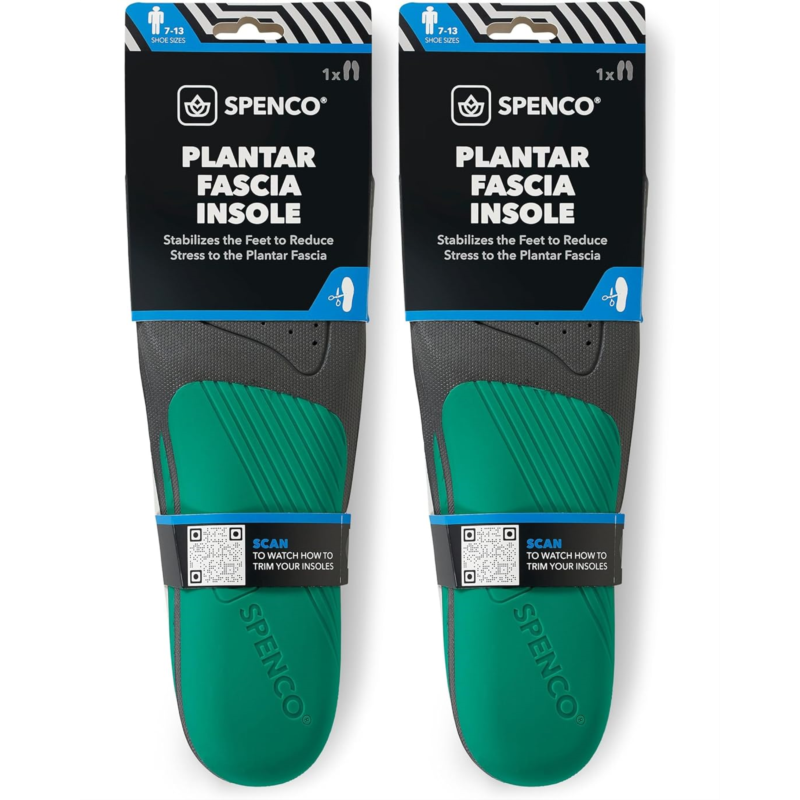 The Spenco Plantar Fascia insole features a rearfoot stability plate that helps relieve pain from repeated stretching, minor tears and inflammation of the plantar fascia. Targeted arch support helps reduce tension and stress on the plantar fascia for faster healing and overall feet health. Industry leading Spenco shock absorbing foam keeps your foot comfortable throughout the day and can be used in any athletic, running or walking shoes with removable insoles.