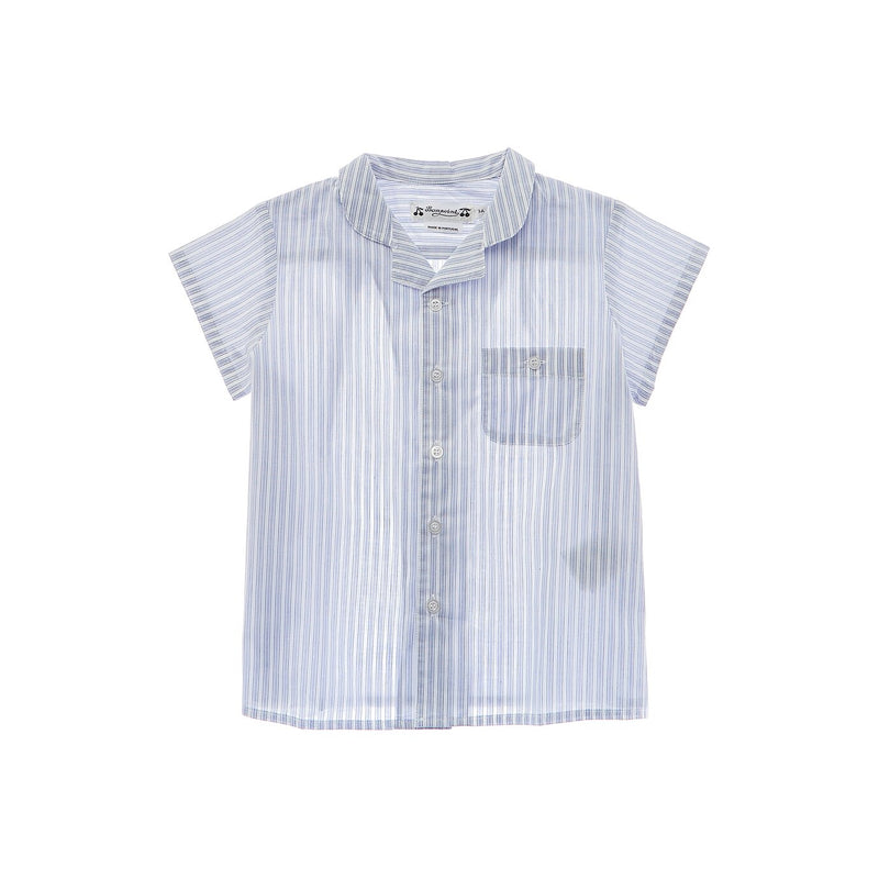Introducing the BONPOINT Collar Top, a stylish and versatile addition to your little boy''s wardrobe. This crisp white top features a subtle blue trim, adding a touch of sophistication. The notched lapel, chest pocket, and side slits at the hem give this top a unique and trendy look. Made from 100% cotton, it is comfortable and easy to care for with machine washable convenience. Perfect for any occasion, this top is a must-have for the fashionable young gentleman. Imported from BONPOINT, a trusted brand known for quality and style.