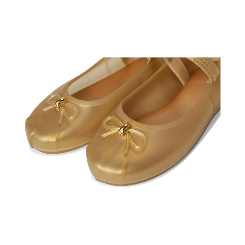 s sure to keep you oohing and aahing - as much over the light-as-air feel as its ultra-feminine and versatile silhouette. The flats come with a vegan certified, water-resistant polyvinyl chloride upper and Grenflex laminated polyvinyl chloride insole. Adorned with a decorative bow with metallic detail and embellished elastic strap for extra security, these round toe flats are a must-have.