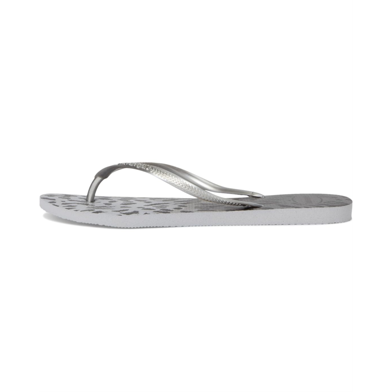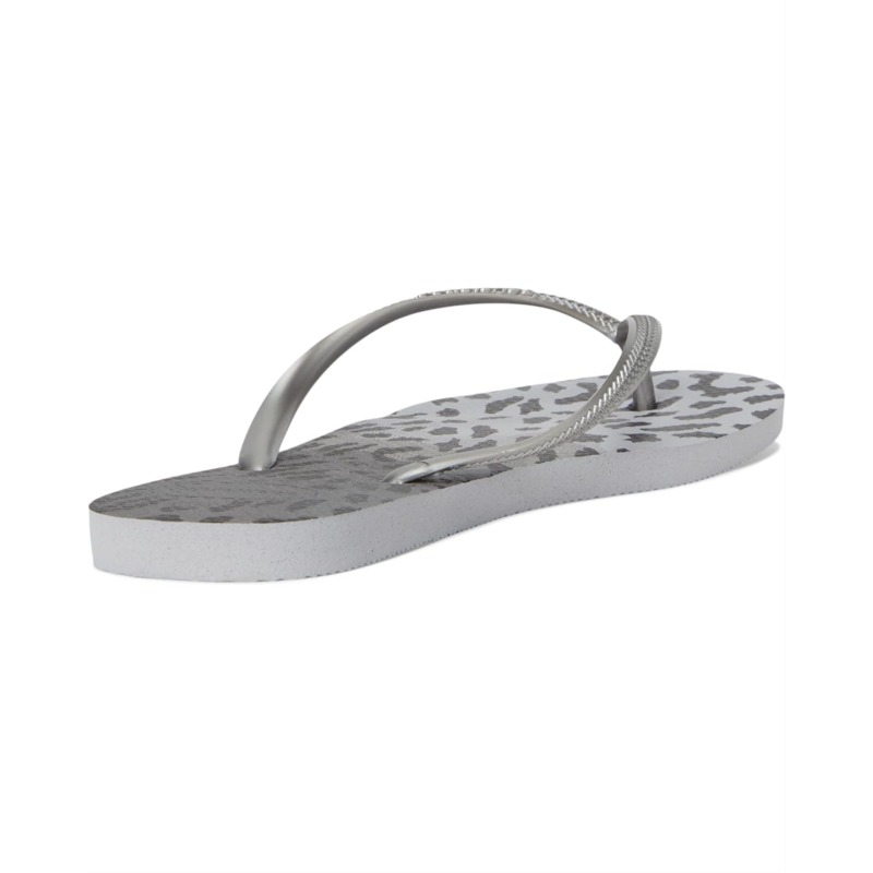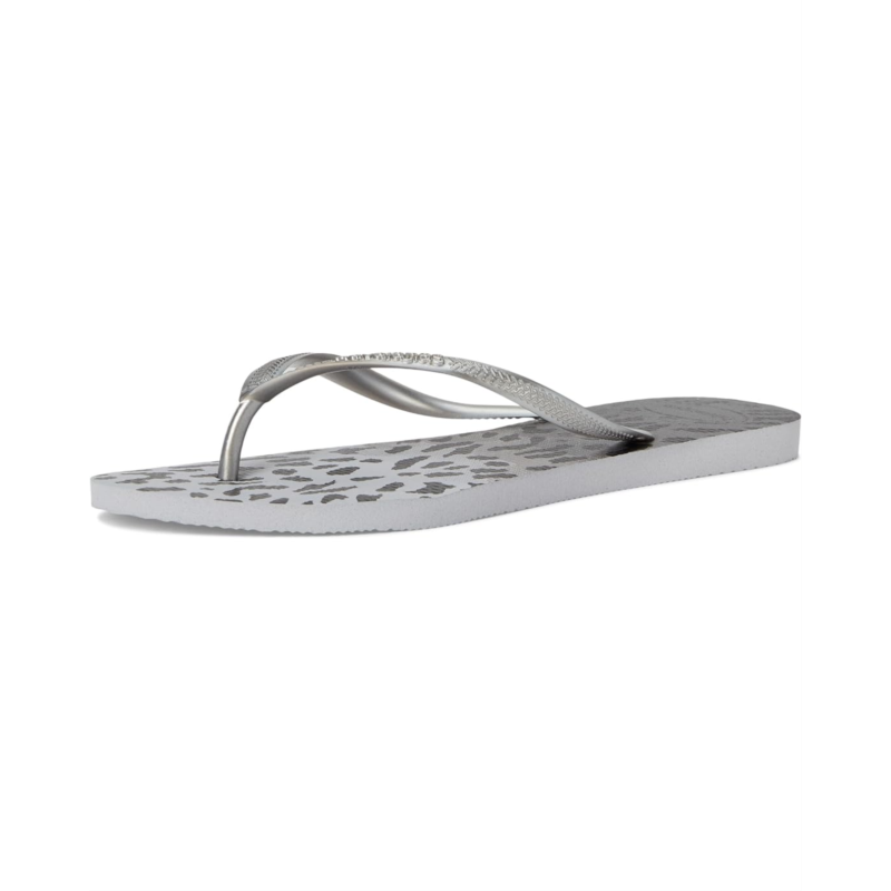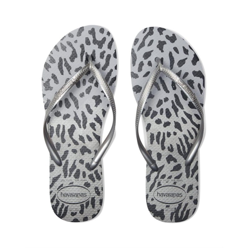 Take a walk on the wild side in the Slim Animals flip flop. Featuring the animal prints you love, in fresh and vibrant colors. Finished with a tonal Havaianas logo on slim metallic straps.