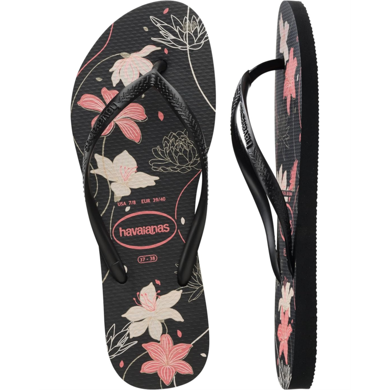 The Havaianas Slim Organic Flip Flop Sandal will ensure that your beach style is effortlessly chic with a thong-style construction, embossed logo accent at the straps, and a fun floral print at the cushioned footbed.