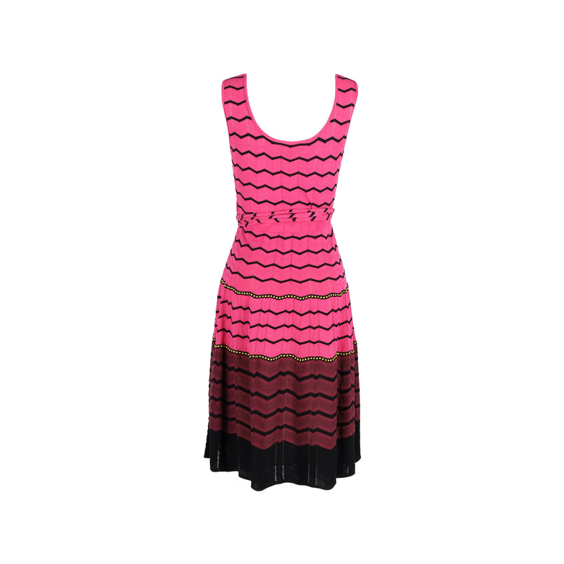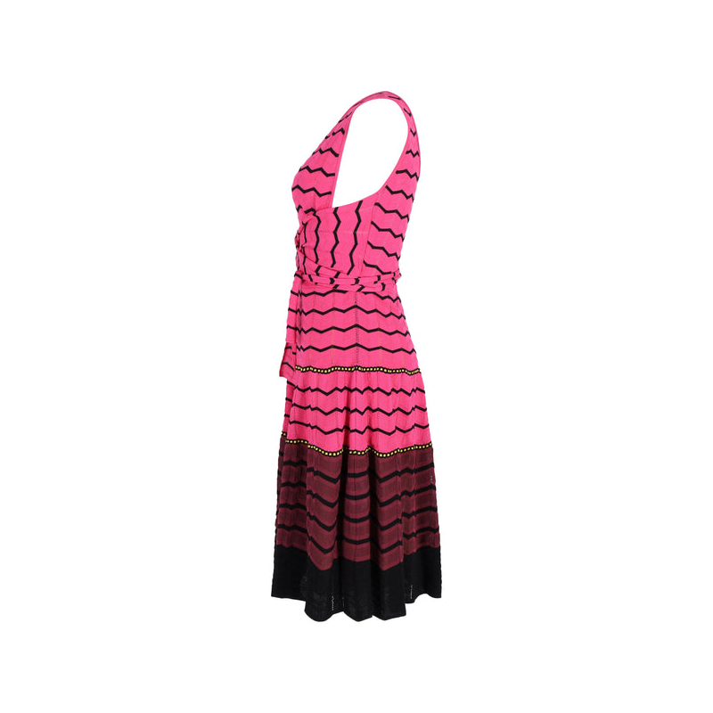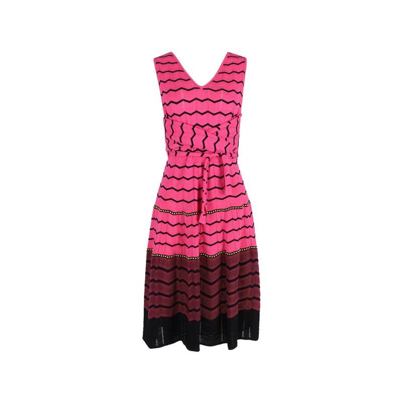 [US] Missoni m knit tie front detail sleeveless midi dress in pink zigzag cotton