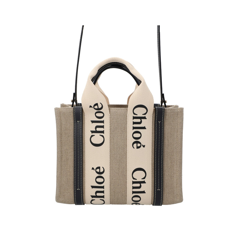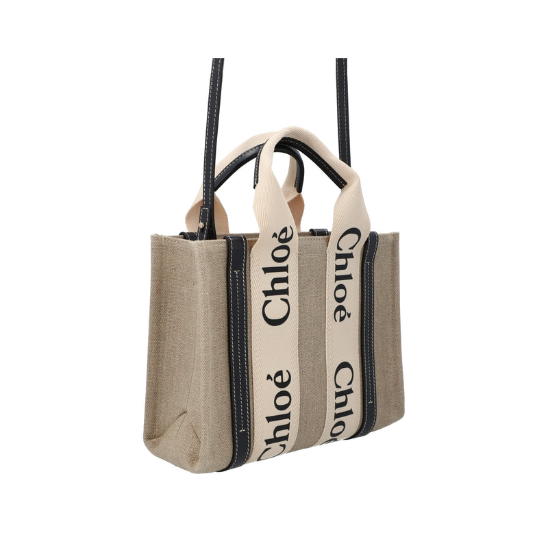 Tote bag in linen canvas & shiny calfskin with linen Chloe logo